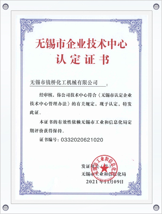 無(wú)錫市企業(yè)技術(shù)中心認(rèn)定證書