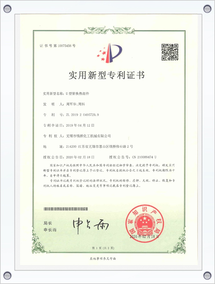上一篇:U型管換熱器專(zhuān)利證書(shū)