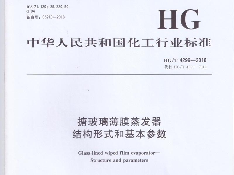 2021-02-18HG/T 4299-2018 搪玻璃薄膜蒸發(fā)器結(jié)構形式和基本參數(shù)規(guī)范性引用文件,下列文件對于本文件的應用是必不可少的。凡是注日期的引用文件,儀注日期的版本適用于本文件。凡是不注日期的引用文件,其最新版本(包括所有的修改單)適用于本文件。