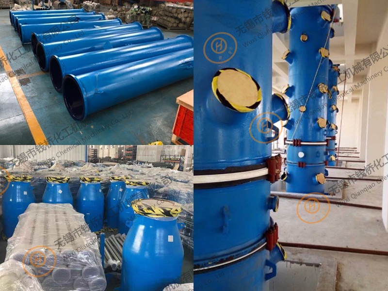 Glass lined tower section, All glass-lined pipe fittings adopt a cold spray process, which requires workers to repeatedly grind and refine the billet and glass glaze powder, and the moisture in the glass glaze powder is naturally dry.