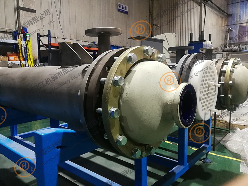 Reinforced type [steel lined F4 or steel lined PFA] SIC heat exchange ● Test each heat exchange tube under pressure of 185 Bar before installation ● Heat exchanger housing diameter range from DN100 to DN600 ● The standard length of the heat exchange tu